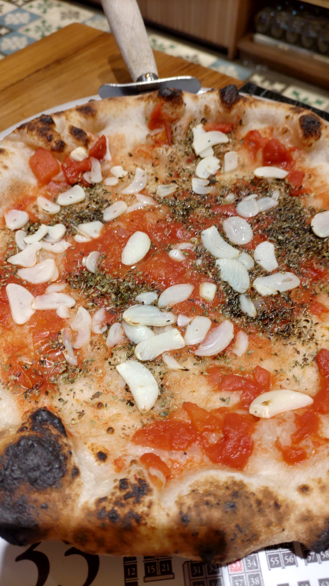 ガーリックのきいたスペシャルなピザ